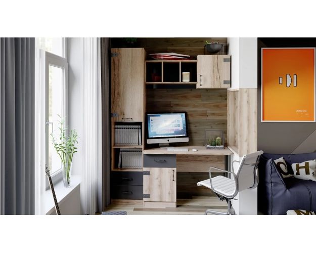 - Стол письменный с ящиком Окланд фон черный / дуб делано. 1 шт.