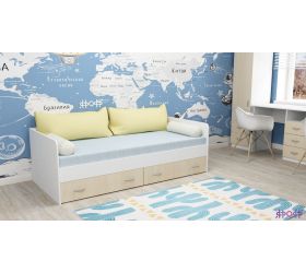 [name] => Кровать с выкатными ящиками Белое дерево/Дуб молочный