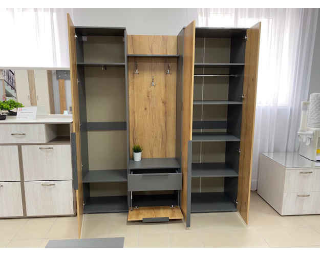 Шкаф двустворчатый с полками Стил темно серый лофт / дуб золотистый сочетает в себе красоту и практичность, что делает ее идеальным вариантом мебели для украшения вашей современной комнаты.